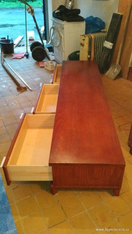 Prodám zachovalou skřínku z dřevěného masivu se 3 výsuvnými šuplíky na nožičkách. Skřínka je vhodná do obývacího pokoje pod TV či jen samostatně. Má velký úložný prostor.