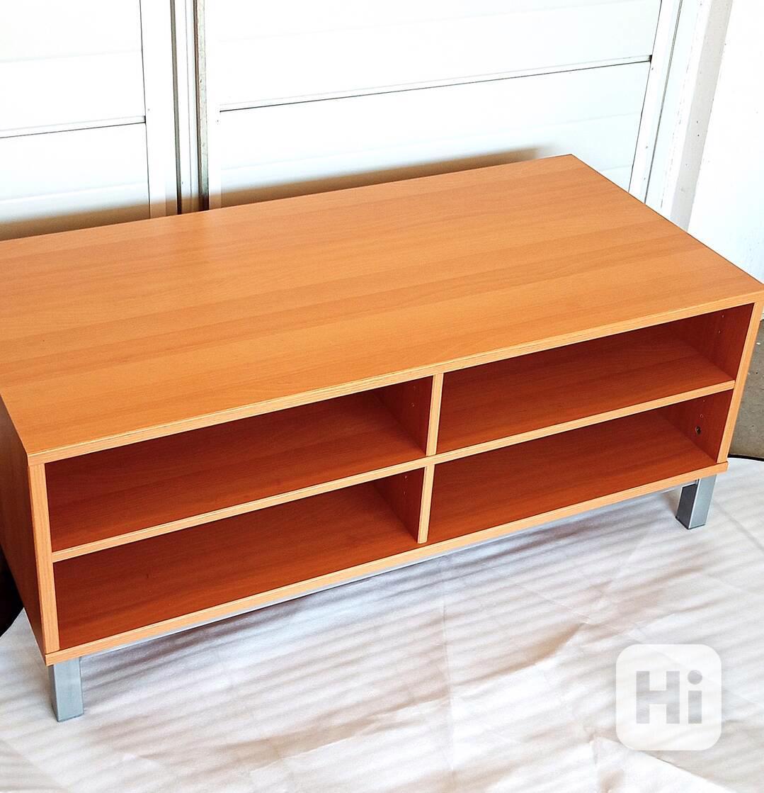 Nabízíme levně velmi pěknou skříňku s policemi vhodnou i pod TV. Stříbrné nohy. Rozměry délka 125 cm, šířka 60 cm a výška 51 cm. Skříňku si možno prohlédnout nebo i vyzvednout v Č. Budějovicích. Cena jen 1.490 Kč.