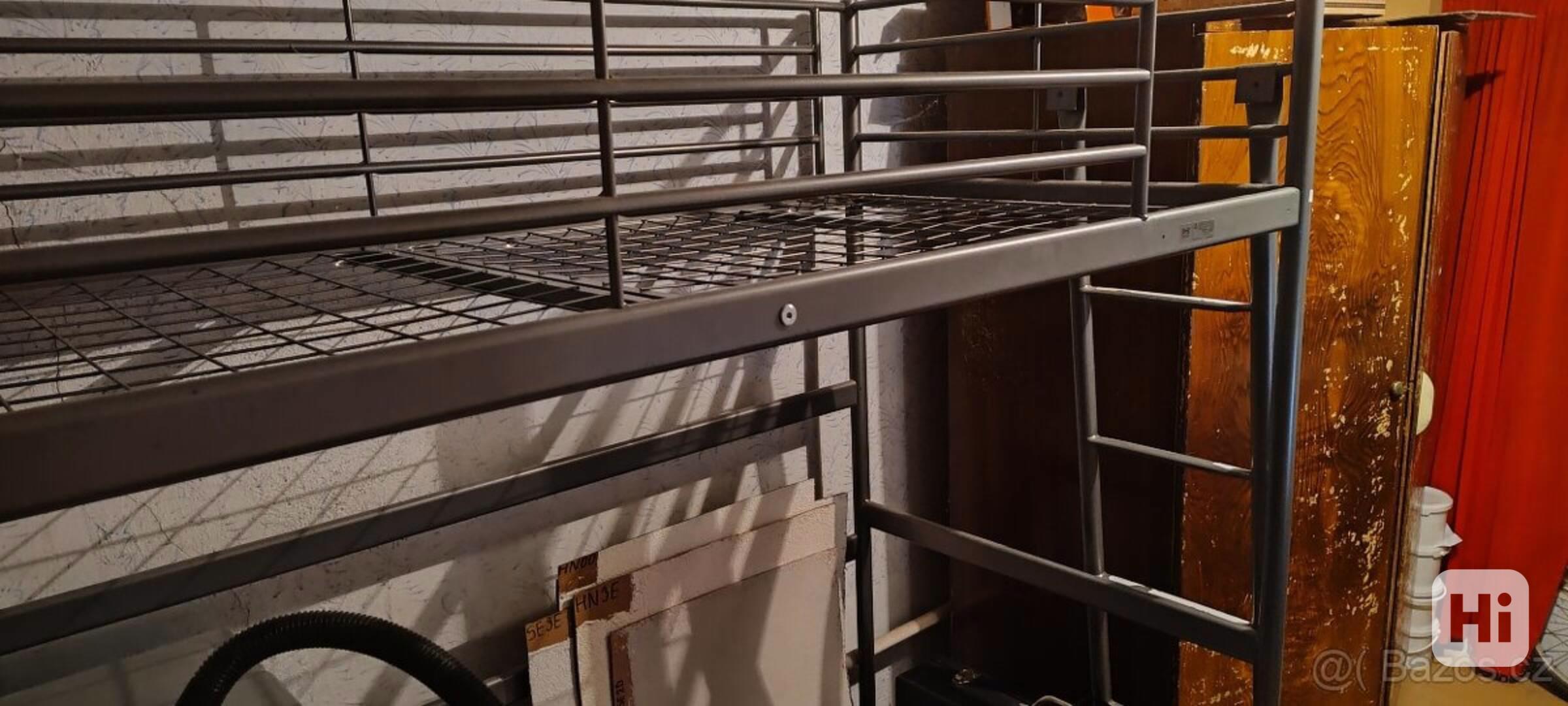 Nabízím již nepotřebnou patrovou postel Ikea Svärta z kovových profilů v šedivém metalickém odstínu. Vynikající stav.