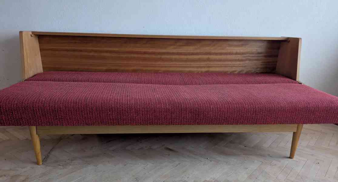 Prodám rozkládací retro pohovku JITONA, československá výroba, cca 60. léta. Klasický nadčasový design, pevná dřevěná konstrukce, typické kónické nožky.