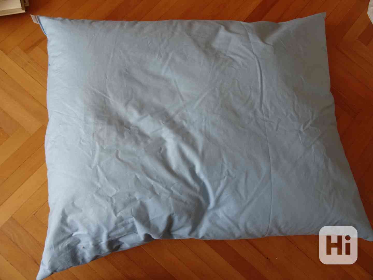 Prodám nový péřový polštář v modrém sypku z firmy Peřinka. Rozměry 70x90.