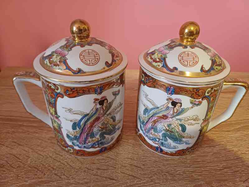 Prodám 3ks čínských hrníčků s pokličkou na čaj viz foto. Cena 1ks hrníčku 80,-Kč, nejraději jako celek za 200,-Kč.