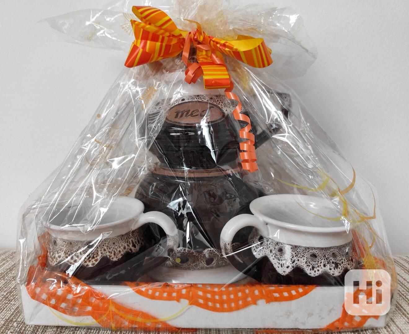 Prodám dárkovou sadu keramiky, konvice na čaj, dve šálky a dóza na med, viz foto. Nová, nevhodný dárek, prodám za 350,-Kč.