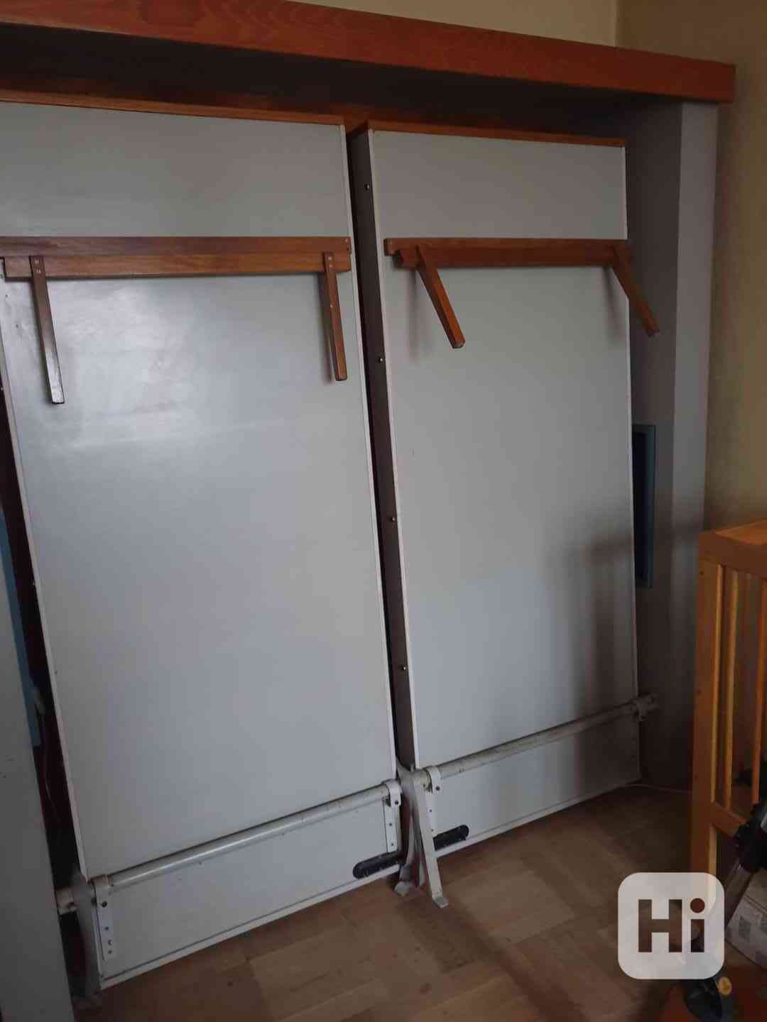 Prodám dvoulúžkovou sklápěcí postel s bočním osvětlením. Bonusem je velká úspora místa během dne.