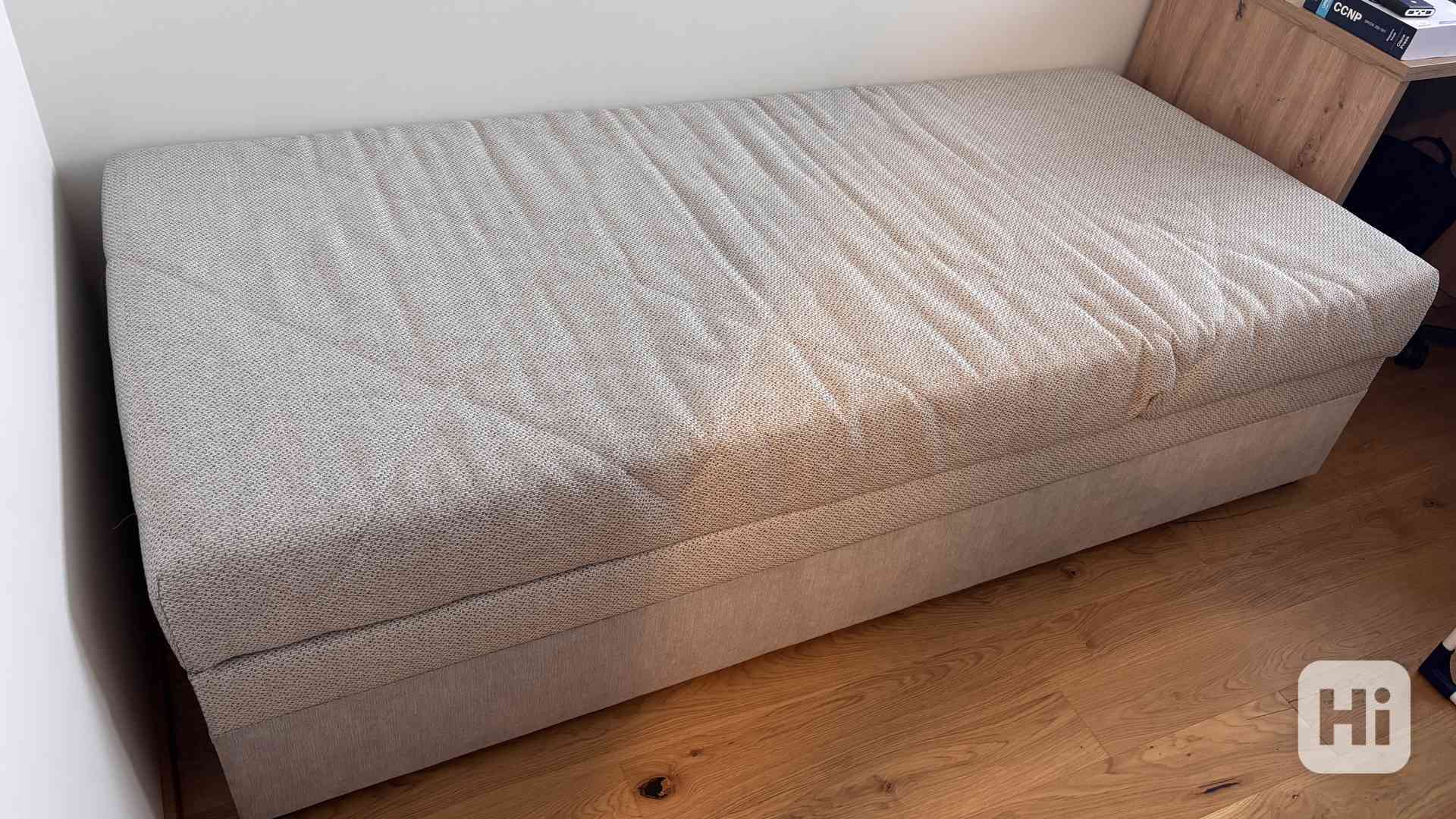 Prodám pohodlnou postel / válendu v 100% stavu - Evelina Asko nábytek 90x200. Disponuje polohovatelnou částí a úložným prostorem, rošt i matrac jsou součástí.