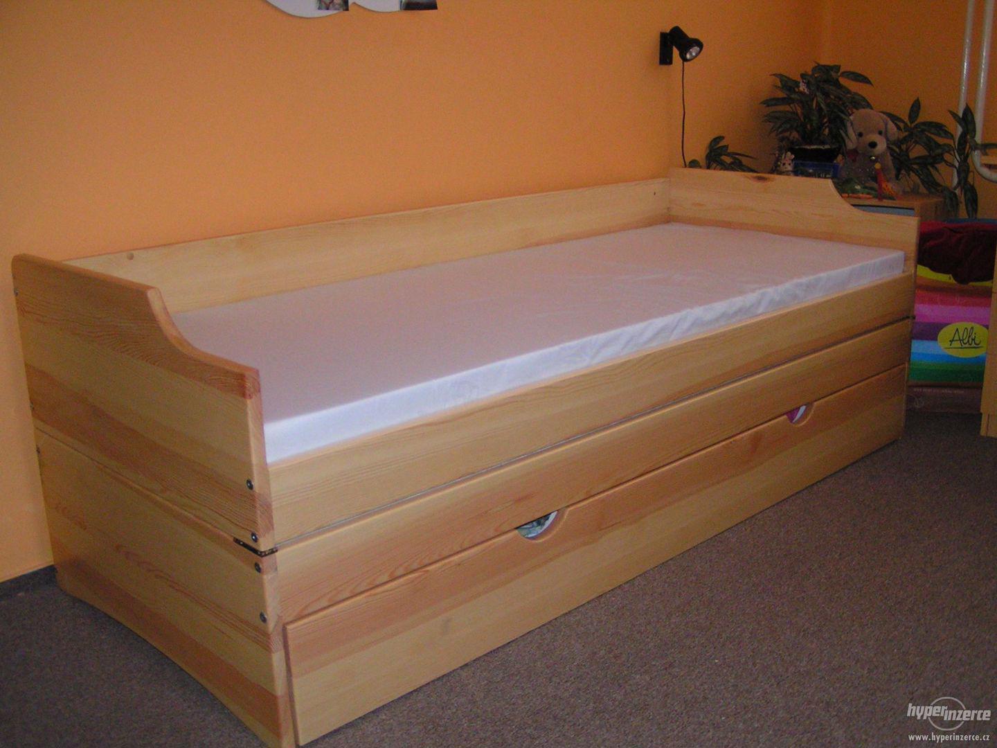 Prodám jednolůžko i jako sedačka z masivního dřeva rozkládací na dvojlůžko.Vhodné do studentských pokojů.