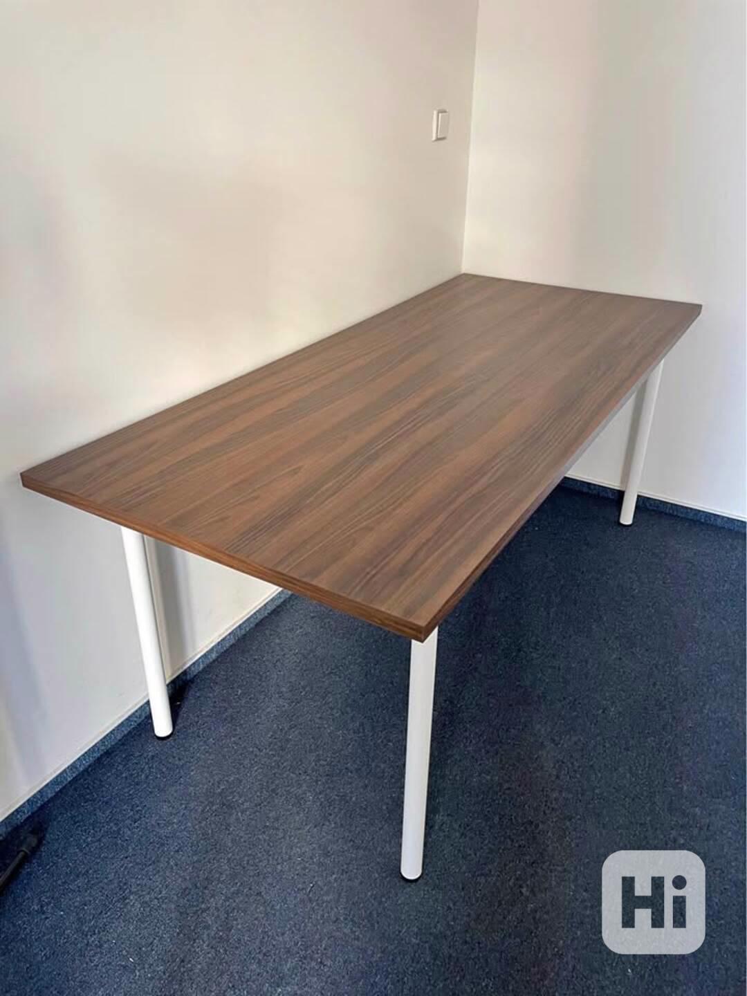 Stůl 180x80cm, na míru uříznutá pevná dřevotřísková 3cm deska + 5 nohou. (obojí z IKEA - Deska EKBACKEN, Nohy ADILS)