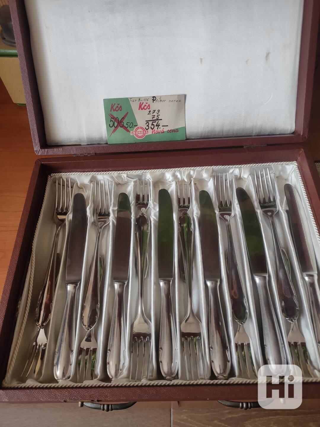 Sada retro příborů Sandrik Anticorro, vždy po 6 kusech - polévková lžíce, lžičky, vidličky, nože a dezertní vidličky. Původní stav, jako nové, nepoužité, lesklé, neodřené, v dárkové kazetě, s původní účtenkou. Mohu zaslat i přes zásilkovnu.