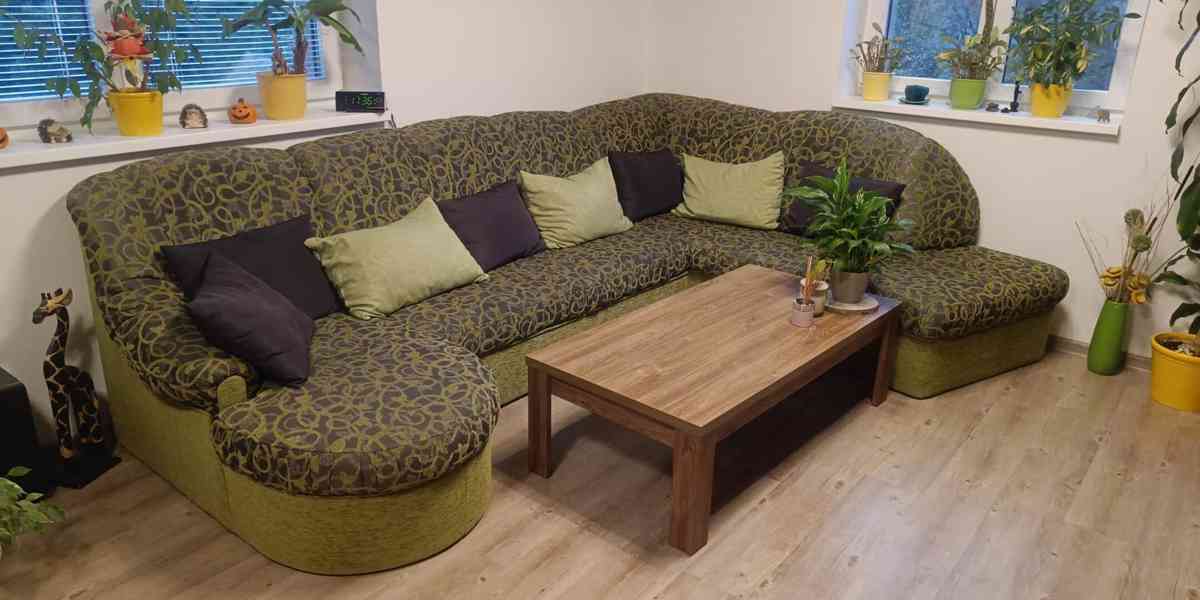 Velký rozkládací gauč a křeslo. Rozměry gauče jsou přibližně 245 x 190 cm. Z toho 3-sedák složený je d/h/v -165x85x96 cm, rozložený 165/160/96 cm. Roh je 80x190x96. Rozměry křesla jsou přibližně 96/85/96 cm. Gauč i křeslo jsou nepoškozený, funkční, bez skvrn. Pouze byl dlouho zavřený v chatě = mírná „zatuchlina“ – zřejmě bude nutné ho vytepat. Pouze osobní vyzvednutí – Jedovary u Trhových Svinů. Při platbě předem se lze domluvit, že ho do rozumné vzdálenosti dovezu za cenu PHM. Cena dohodou.