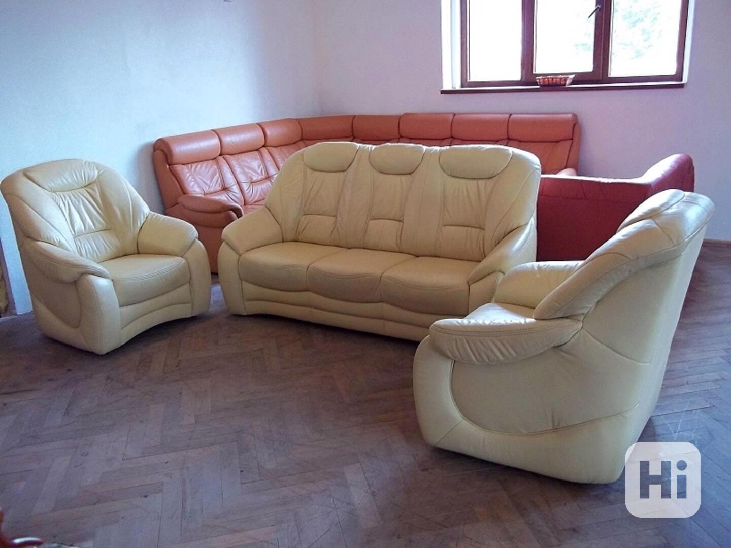 Vysoká sedačka. Obě křesla na kolečkách. Barva béžová. Pravá kůže.