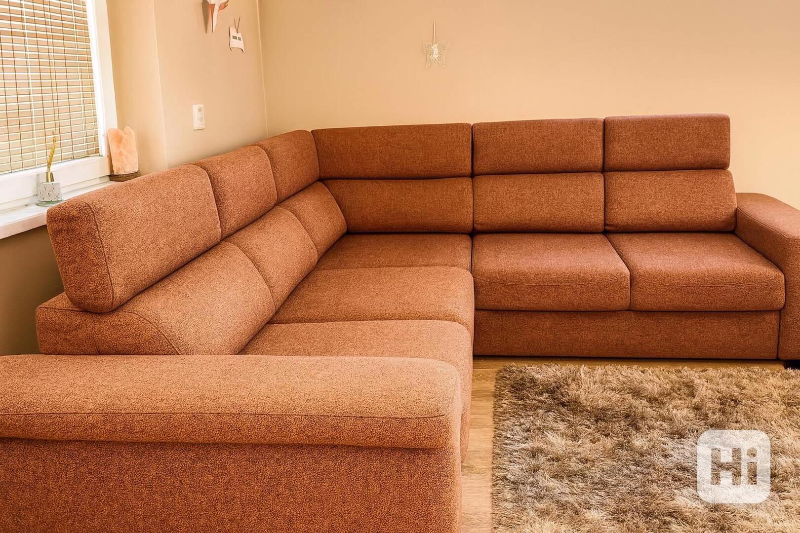 rohová rozkládací sedací souprava – MÁLO POUŽITÁ, VIDITELNÉ VADY OD KOČIČKY.