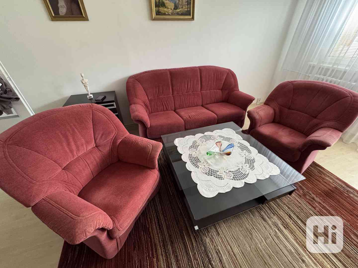 Prodám starší kvalitní plyšovou sedací soupravu německé výroby v kombinaci pohovka + křeslo + otočné křeslo v zachovalém stavu vínově červené barvy. Rozměry pohovky: 190x90x85cm, rozměry křesel: 86x90x80 cm. Koupeno v Sconto nábytek, původní cena 65.000 Kč, nabízím velmi výhodně.