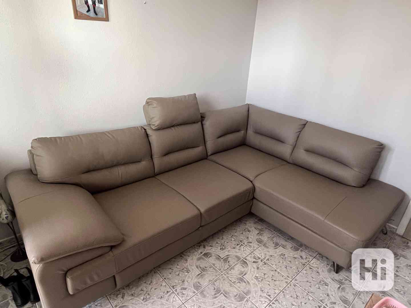 Prodám zánovní nepoužívanou rozkládací koženou sedací soupravu. Nepoužívaná nepoškozená jako nová. Polštáře opěradla jsou napevno. Opěrka hlavy odnímatelná a přesunutelná. Rozměry viz foto. Umístění nábytku České Budějovice, info na tel. č. 606 737 008.
