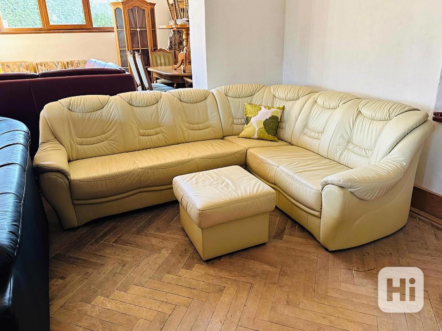 Vysoká sedačka. Celokožená vhodná i k umístění do prostoru - kůže i vzadu. Barva krémová. Pravá kůže.