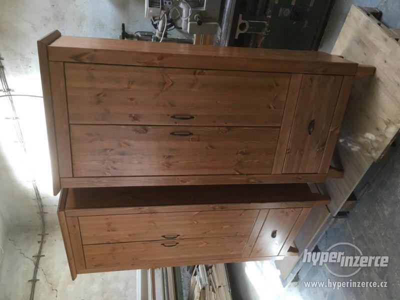 Prodám nové skříně z masivní borovice povrchová úprava odstín bernstein 2kusy,cena za kus 10800kč.