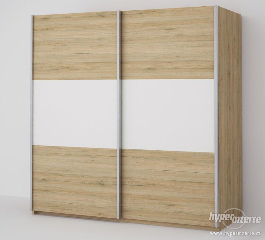 Prodám moderní prostornou skříň s posuvnými dveřmi o rozměrech š170 x h60 x v195 cm. Barevné provedení Dub sonoma / bílá. Dělená šatní skříň která je zcela nová nepoužívaná. Možnost dopravy a montáže. Platí do smazání inzerátu.