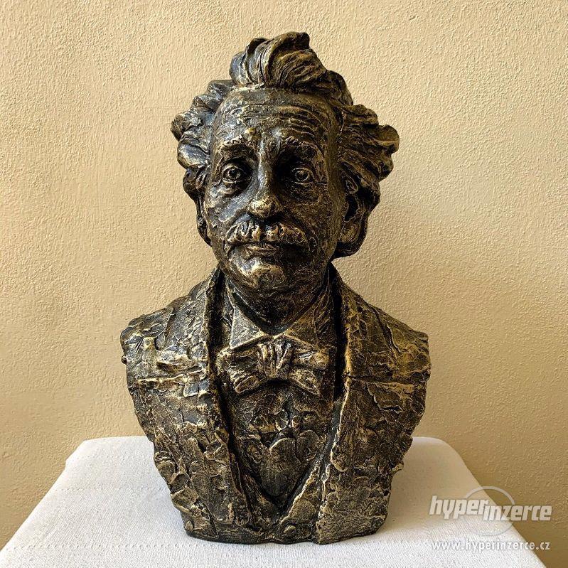 Busta z polyresinu, zlato bronz barevná úprava, výška 50 cm, váha 3,70 kg.