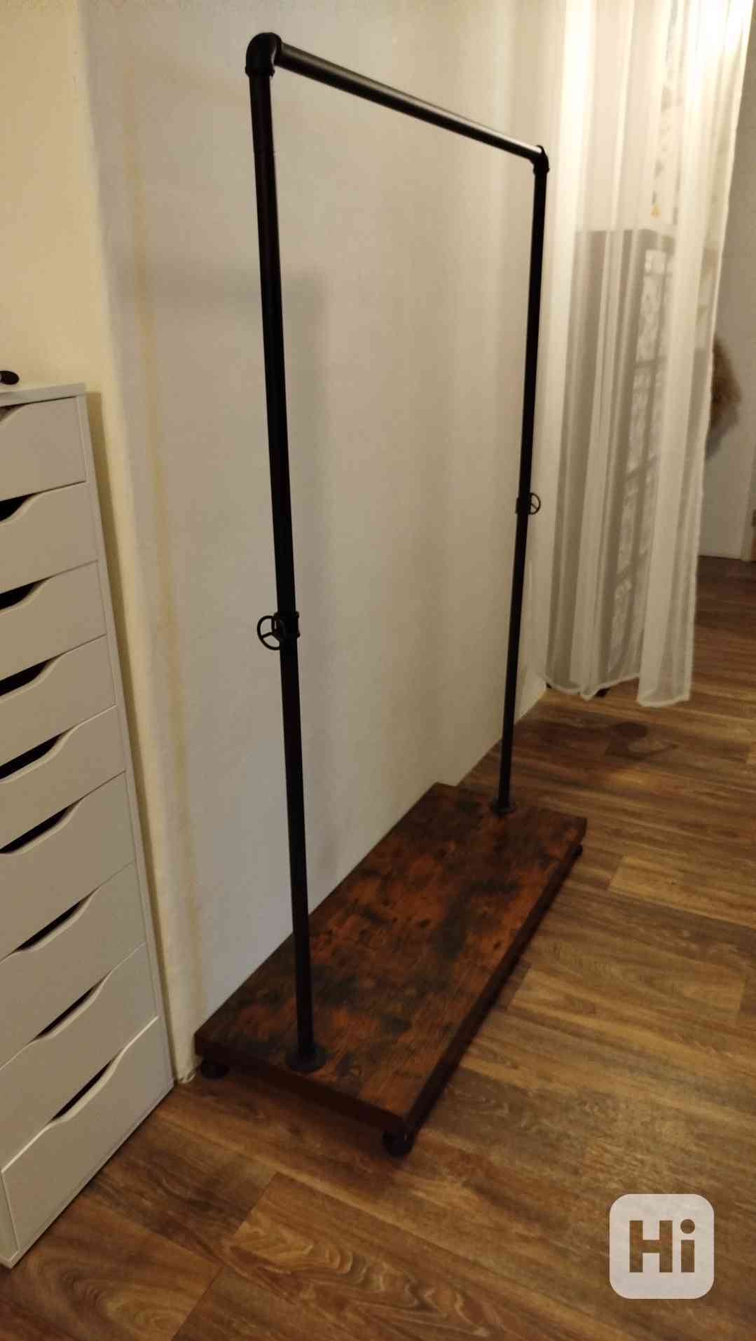 industriální vzhled. Kovová tyč, pevná nosná kovová konstrukce podstavce. Výška 155 cm, délka 105 cm, šířka 40 cm. Velmi dobrý stav. Lze demontovat. Pouze osobní odběr - Přerov