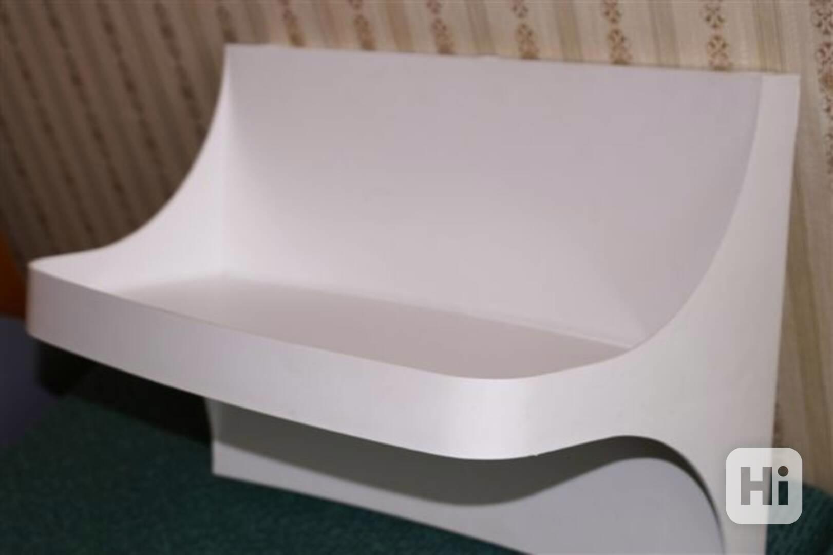 Prodám bílou polici z tvrdého těžšího plastu, šíře 40 cm (obdélník na zeď k připevnění 40x30 cm), hl. poličky 25 cm. Na zadní straně jsou otvory pro snadné pověšení. Perfektní stav. Osobní odběr : Praha-Chodov nebo dovezu do centra.