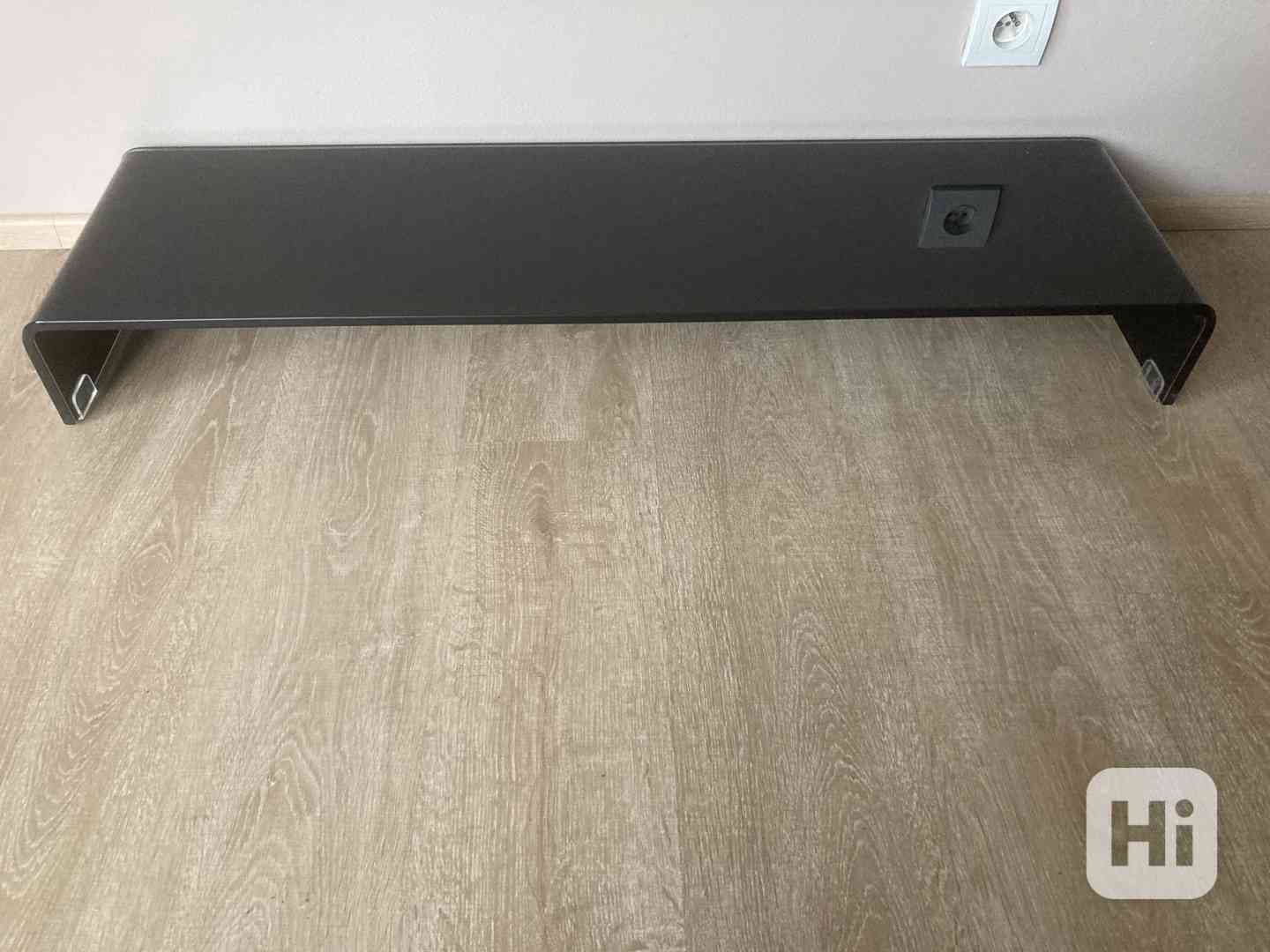 Prodám podstavec pod TV nebo monitor. Tvrzené sklo, černá barva. Šířka 110 cm, hloubka 30 cm, výška 13 cm.