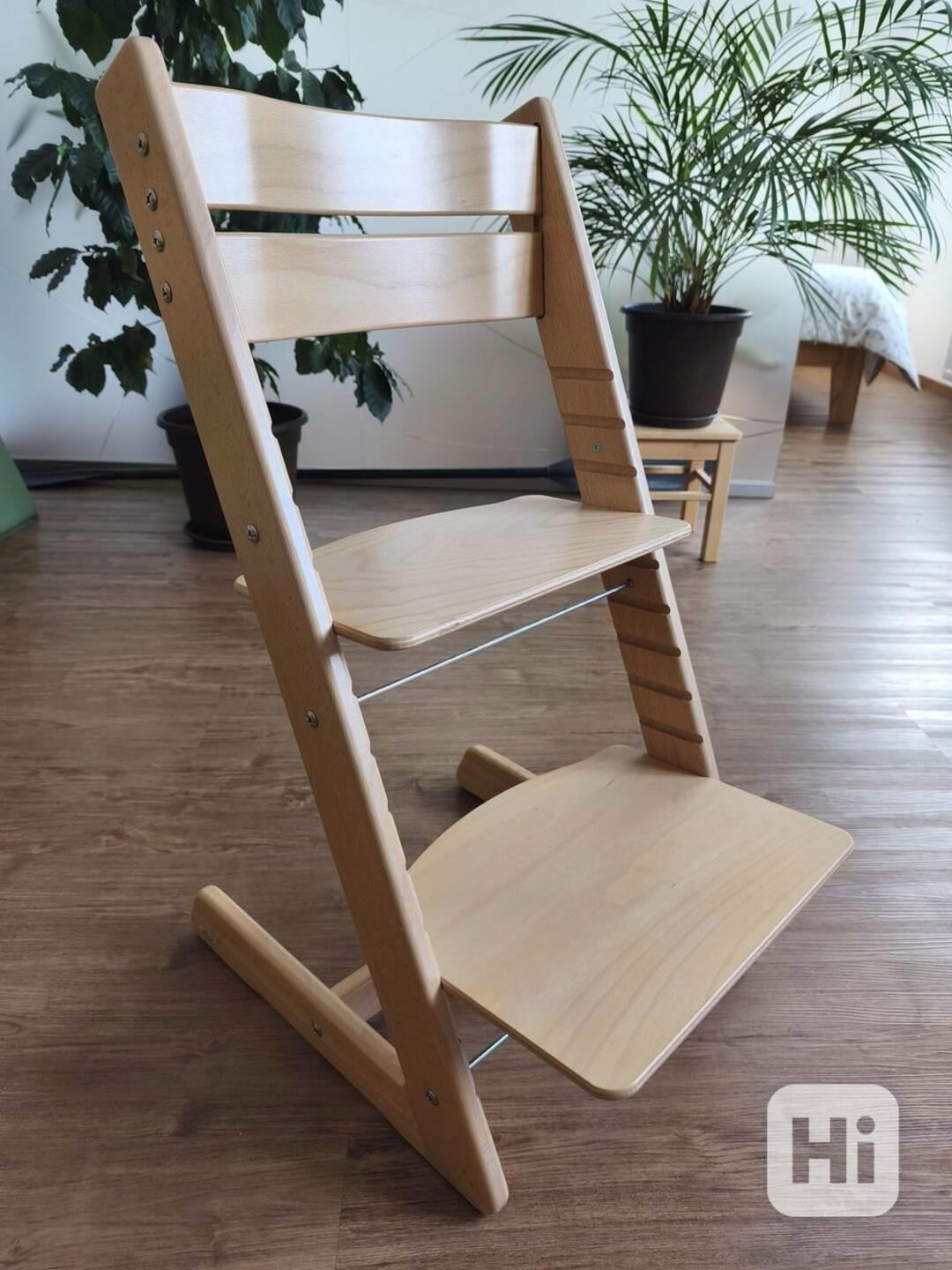 Prodám rostoucí lakovanou židli vhodnou pro školáky i k jídelnímu stolu. Židle je vyrobena z bukové překližky, má dělené opěradlo, výškově a hloubkově nastavitelné sedátko a podnožku. Židle je v perfektním stavu, jako nová.