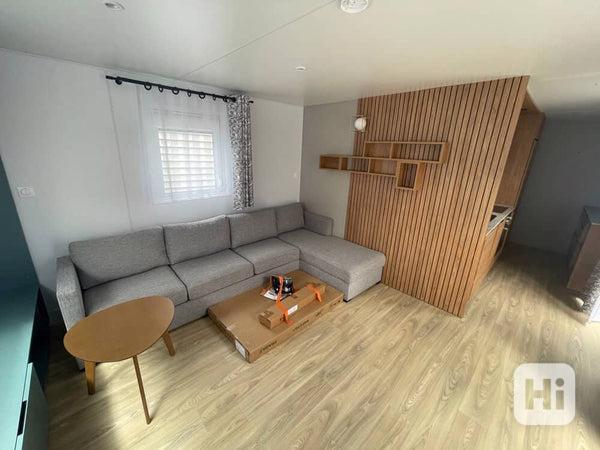 Tento mobilní dům T2 o rozměrech 12,2 m x 2,4 m se pyšní přírodním designem díky elegantnímu dřevěnému obložení. Je kompletně dokončený, a to jak uvnitř, tak vně a je připraven k dodání a instalaci. Interiér je vkusně zařízený, včetně koupelny, funkční kuchyně a postelí v každé ložnici pro optimální pohodlí. Je izolovaný pro celoroční použití a je navržen tak, aby poskytoval pohodlné bydlení ve všech ročních obdobích. Je ideální jako mobilní dům nebo rekreační rezidence a kombinuje funkčnost, pohodlí a přírodní estetiku.