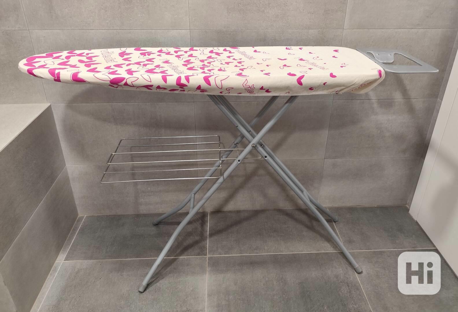 Prodám žehlicí prkno, odkládací plocha na prádlo, paropropustný povrch, výška nastavení 75 - 93 cm, žehlicí deska: 110 × 32, málo používané, viz fota, cena 300,-Kč.