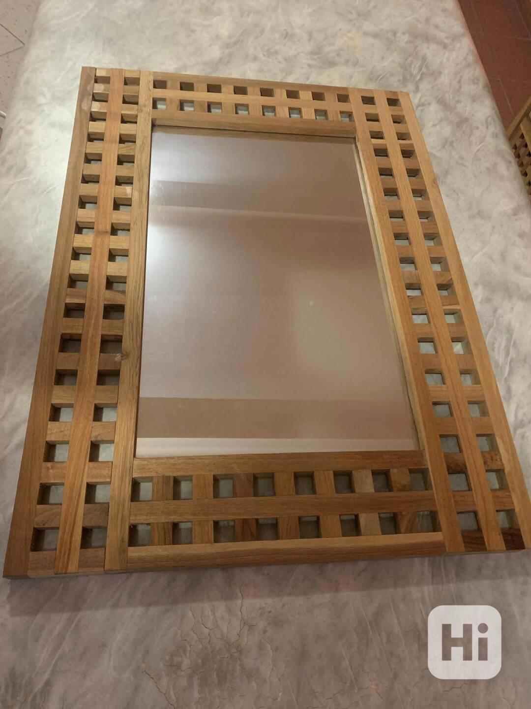 Prodám nástěnné zrcadlo v dřevěném rámu s mřížkovaným dekorem, používané v masážním salónu. Rám je z masivu (přírodní odstín), zrcadlo bez prasklin, drobné známky používání a lehké oděrky na dřevě, viz detailní fotky. Vhodné do předsíně, koupelny, salónu nebo ložnice jako dekorativní prvek.